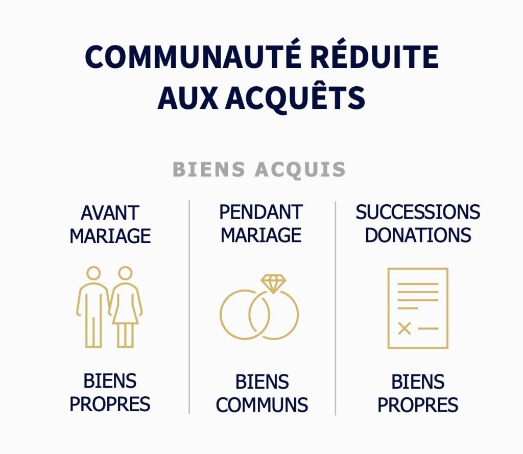 La communauté réduite aux acquêts est le régime matrimonial légal applicable par défaut aux époux en l’absence de contrat de mariage. Il s’agit du régime le plus répandu en France.
